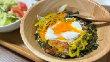 丼もの なっとうふまぜまぜ丼 材料【1人分】 もち麦入りごはん 絹ごし豆腐 納豆 キムチ ごま油 卵 130g 100g 1パック 50g 小さじ1/2 1個 (トッピング) おこのみで ねぎ・ごま・のり・ たくあん・かつおぶしな... 丼ものごはんもの
