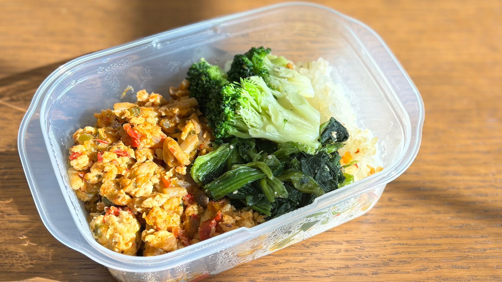 ▶︎火が通ったら(A)を加え、汁気がなくなるまで炒めたら完成。 - 料理の粗熱が取れたら、耐熱容器に詰めて冷凍室で保存する。